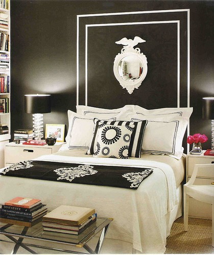 Nếu bạn yêu thích thiết kế nội thất hiện đại và thanh lịch, bức tường màu đen trong phòng ngủ là sự lựa chọn hoàn hảo cho bạn. Bạn có thể làm cho bức tường phía sau giường với một màu đen, có vẻ khó tin, và bạn có thể trang trí nó với một số hình ảnh màu sắc hoặc với một tấm gương lớn, chắc chắn những mảng trang trí đó sẽ trở lên cực kỳ nổi bật.